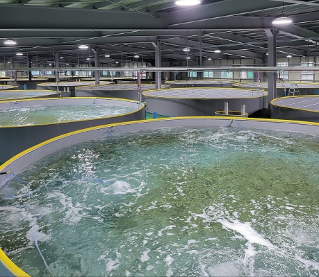 高濃度酸素水を供給し、池の中を十分な酸素濃度に維持することで、高密度飼育が可能になり、生産性の高い陸上養殖を実現いたします。